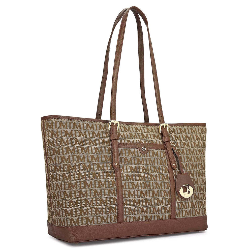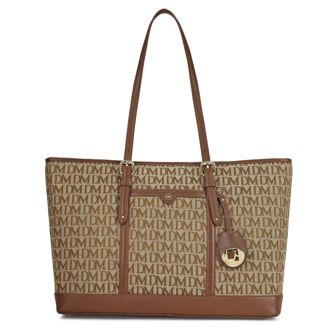 Large Canvas Wax Leather Tote - Beige & Espresso