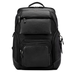 Leather backpack with a play of texture. Featuring multipurpose pockets on the exterior as well as interior to enhance utility. This functional bag is the perfect fusion of Italian craftsmanship and contemporary style. Comes with a detachable shoulder strap, and the bag can fit a standard laptop up to 16 inches.