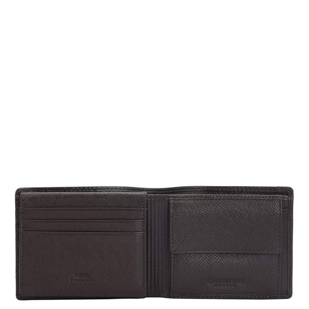 Crafted from textured leather, Da Milano men's bifold wallet offers a compact yet stylish design. Featuring easy-to-organize compartments, card slots, and pockets, it combines practicality with elegance. Subtle branding on the front enhances its refined appearance.