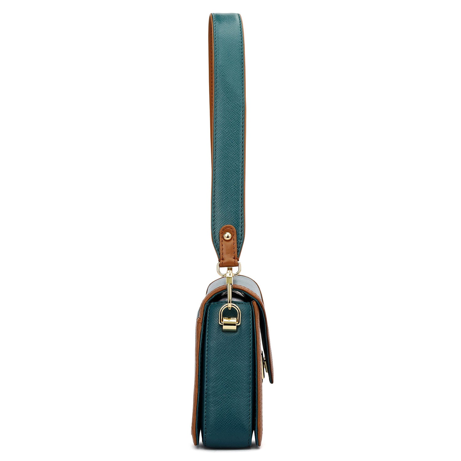 The Classic Baguette is crafted in a striking teal tone, defined by its sleek, compact silhouette and clean, contemporary detailing that lends a refined yet distinctive appeal. Designed for effortless versatility, it transitions seamlessly from day outings to evening plans. Secured with a push lock closure, the interior features a single compartment complemented by a zip pocket and an open pocket for organised essentials. An exterior open pocket allows quick access on the move, making it a practical yet polished everyday companion.