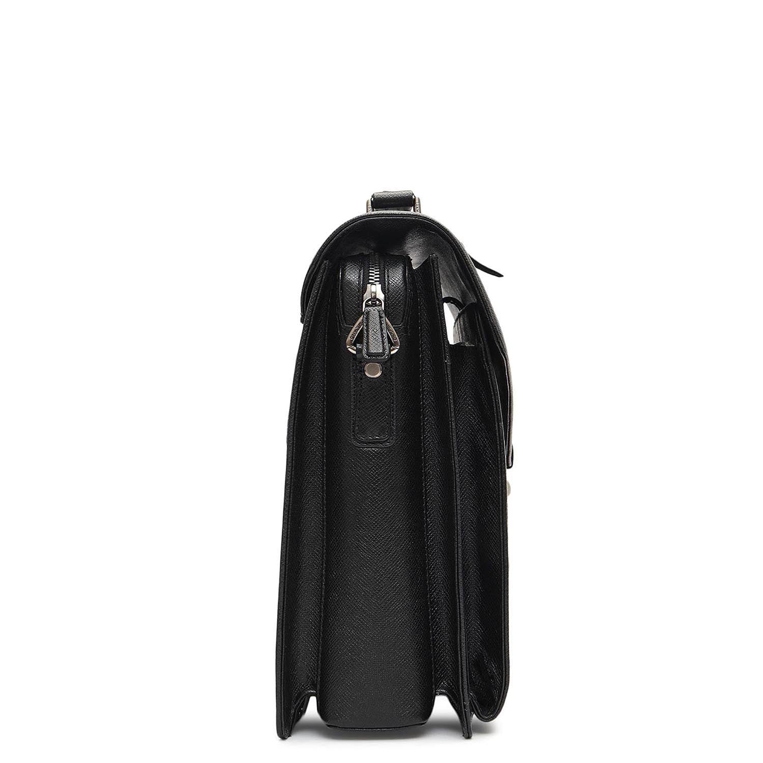 A fine leather portfolio with a smart exterior. Distinguished by its metal hardware and leather, the bag is carefully crafted to maximize utility while keeping it stylish.