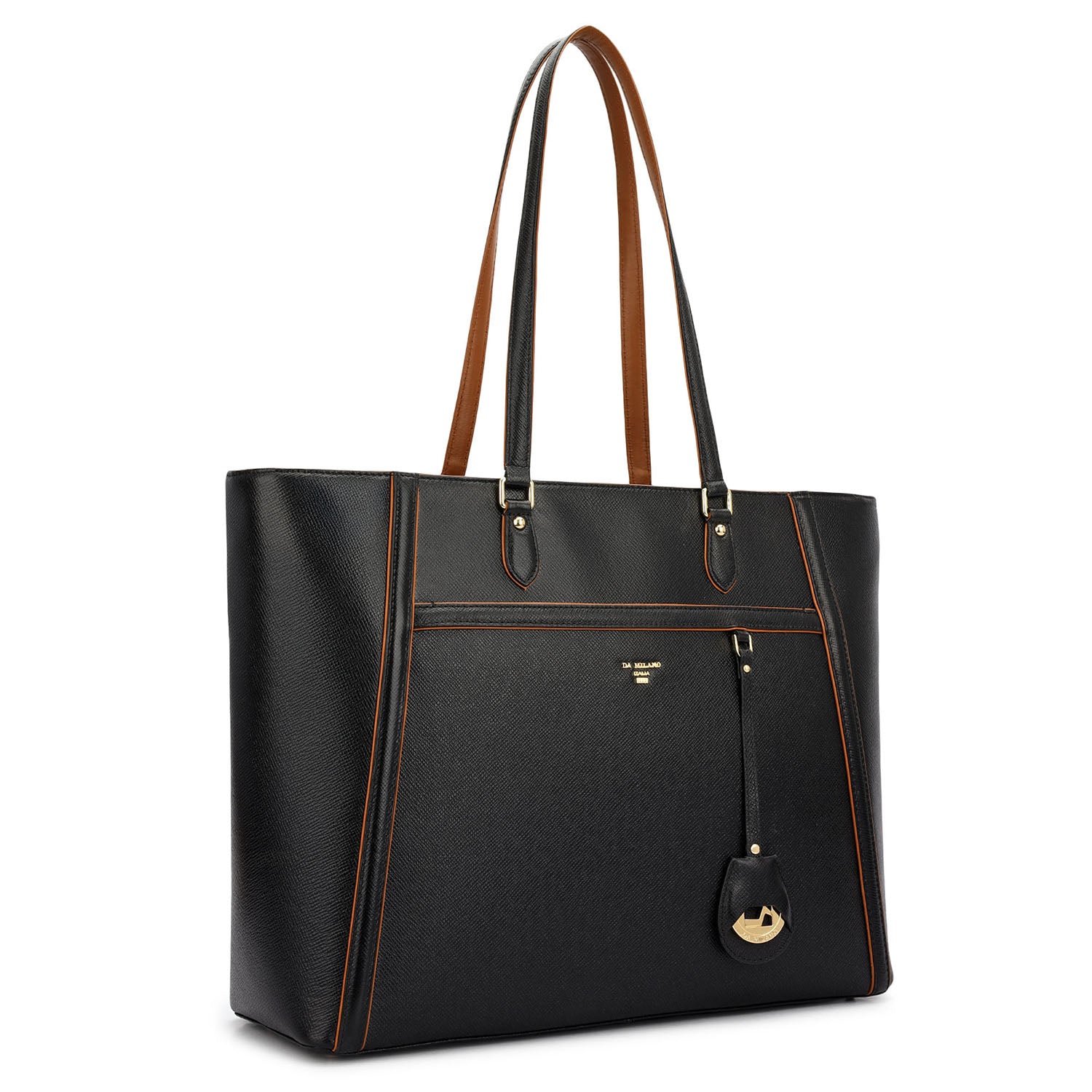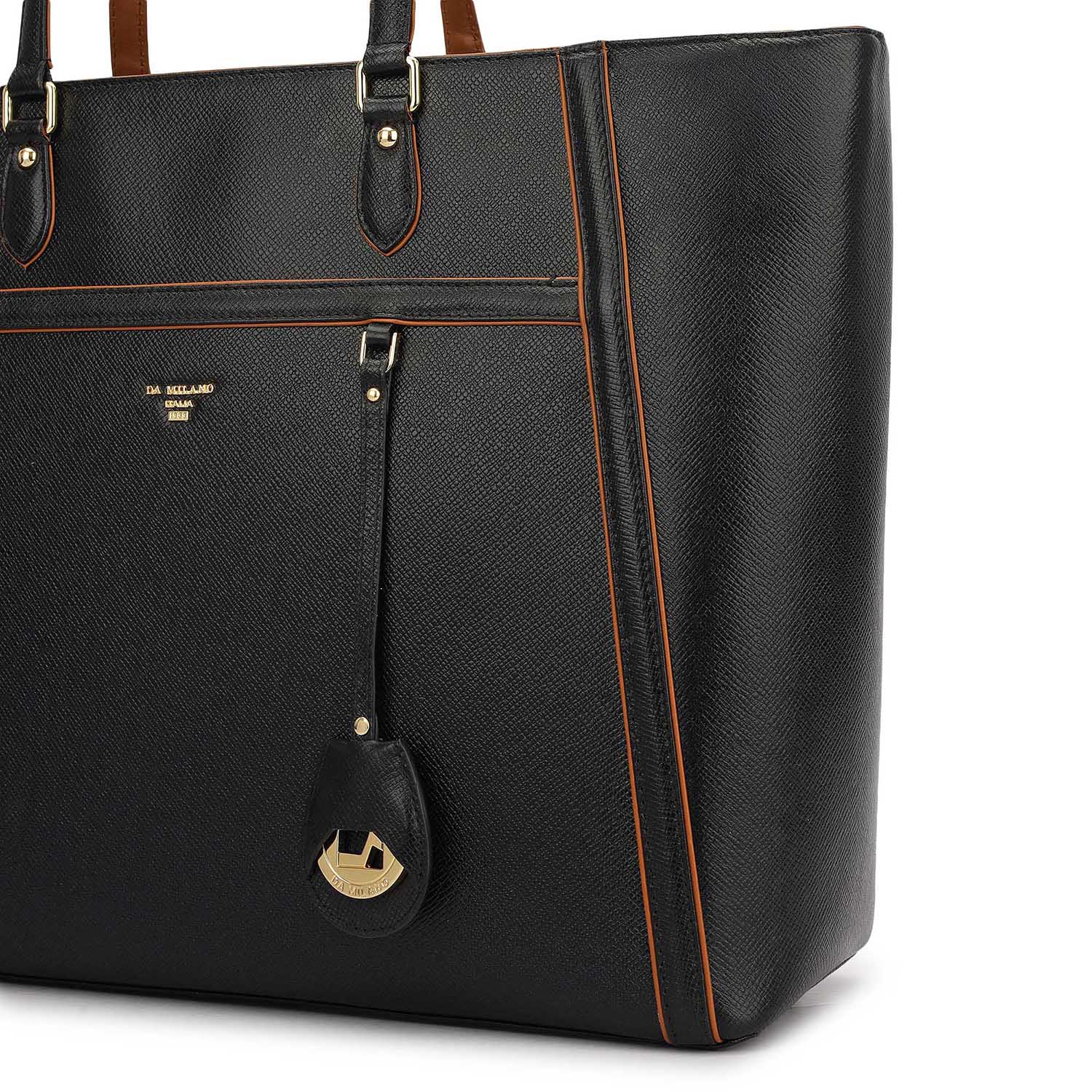 The Classic Shoulder Bag is defined by its structured silhouette and clean panel detailing accented with contrast stitching. Crafted in a classic black tone, it brings a contemporary edge to a timeless carry-all form. Secured with a zip closure, the interior opens to a main compartment along with a dedicated laptop compartment that fits up to a 16-inch laptop, complemented by a zip pocket, two slip pockets, and four holders for organised storage. An exterior open pocket and zip pocket allow quick access on the move, making it a practical companion for daily routines.