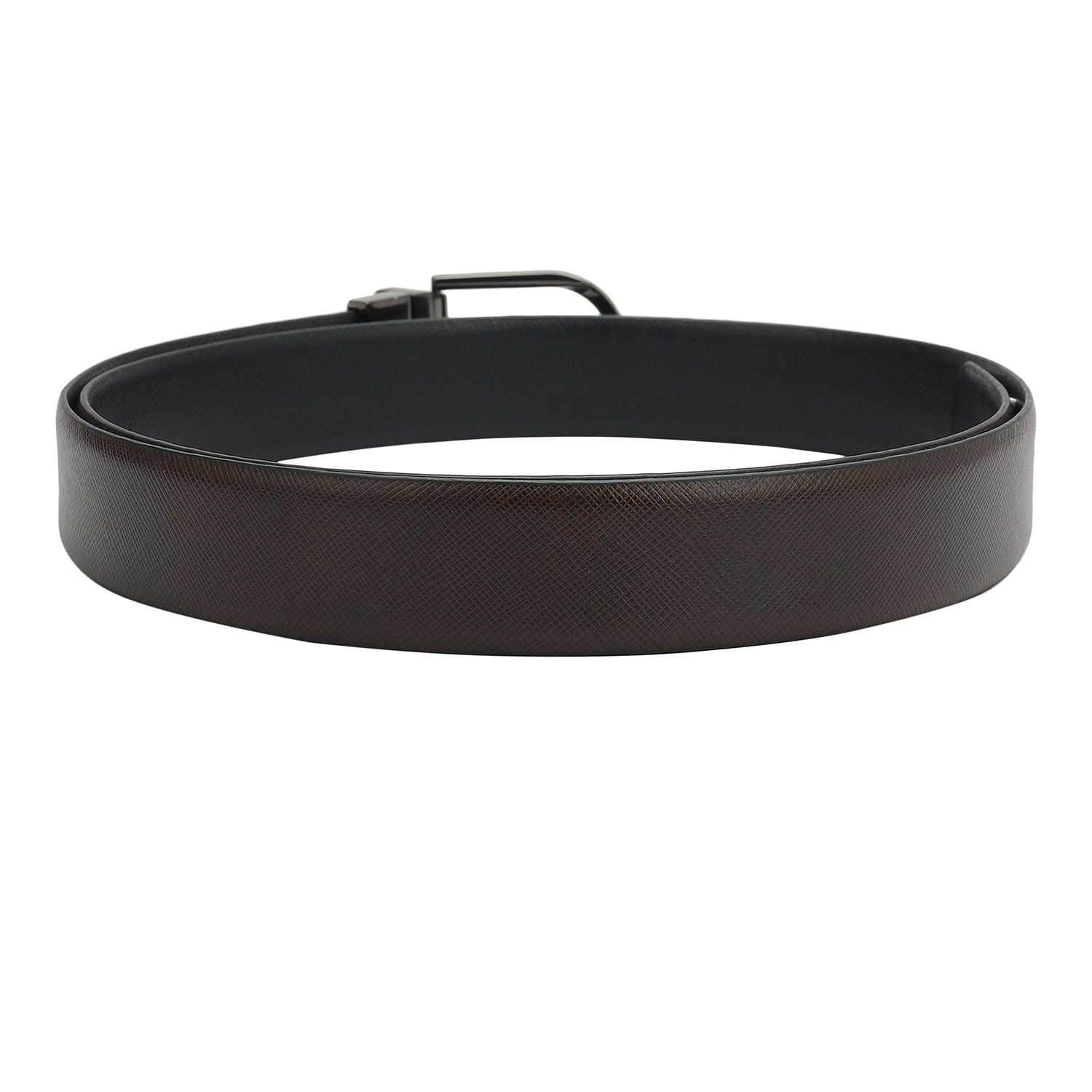 Formal Saffiano Leather Mens Belt - Brown & Black