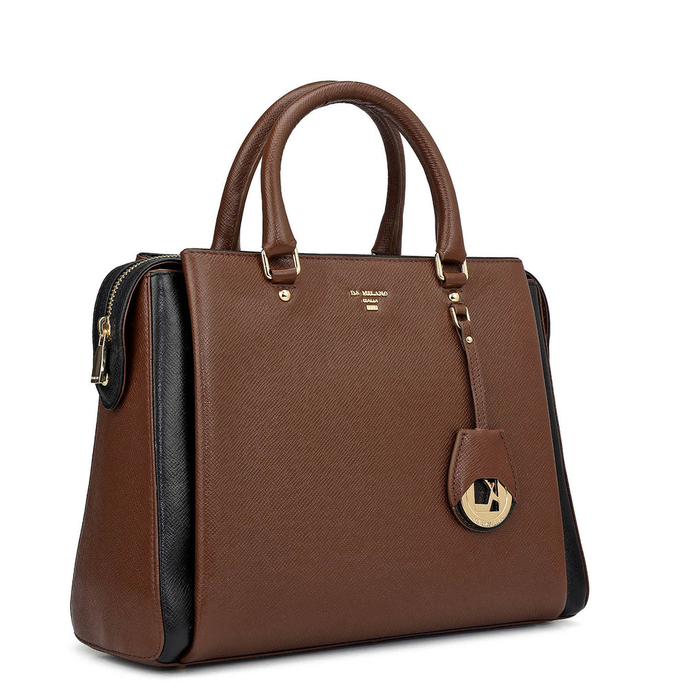 This elegant leather satchel handbag combines timeless style with practical functionality. Crafted from premium full-grain leather, it features a spacious interior with multiple compartments, and a detachable shoulder strap for versatile carrying options. Perfect for both professional and casual situations.