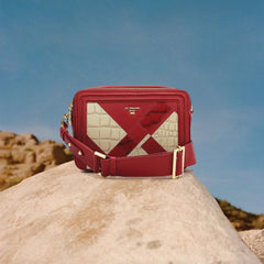 A striking fusion of texture and tone, this compact sling is crafted in croco-embossed leather with a luxe Franzy finish. The geometric patchwork in contrasting Date and Frost hues adds a bold yet elegant character. Designed for day-to-evening ease, it features dual compartments and gold-tone accents—elevating every ensemble with artful precision.