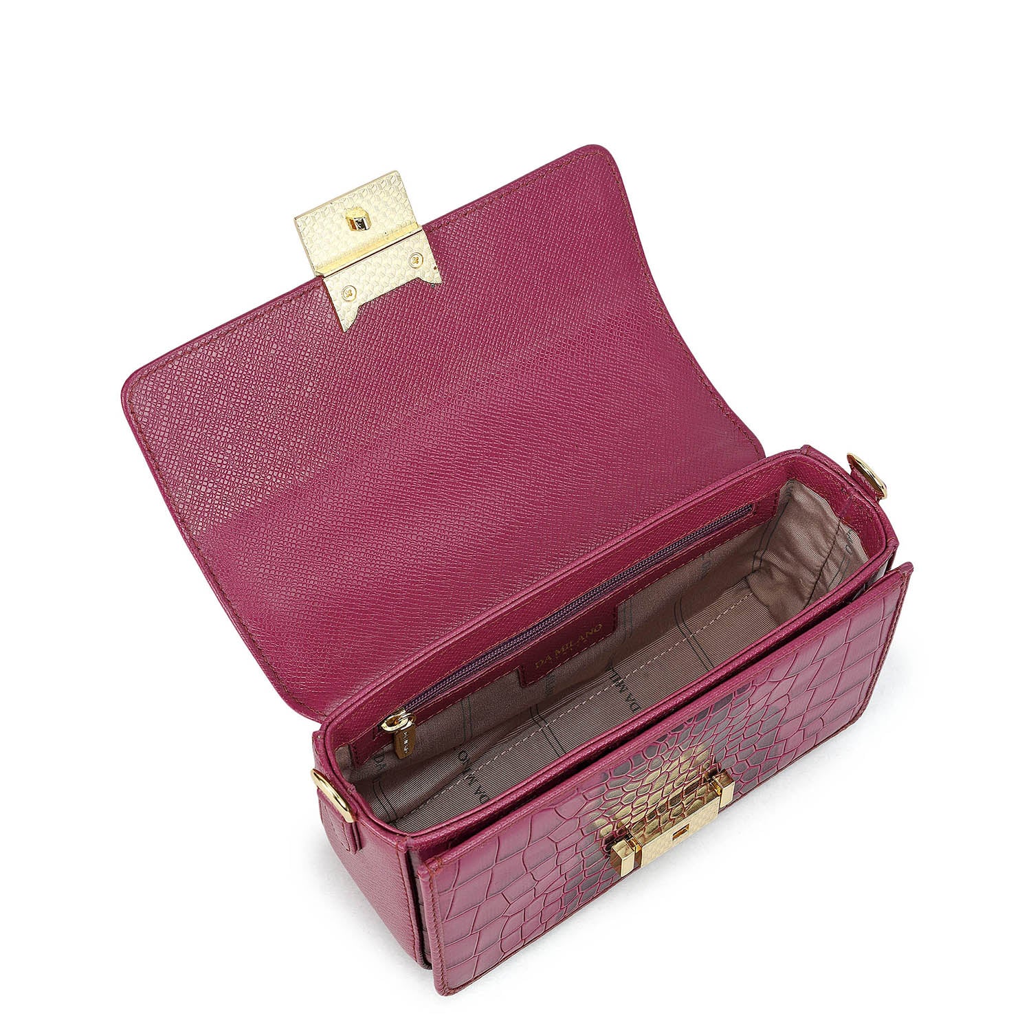 Small Croco Leather Satchel - Orchid