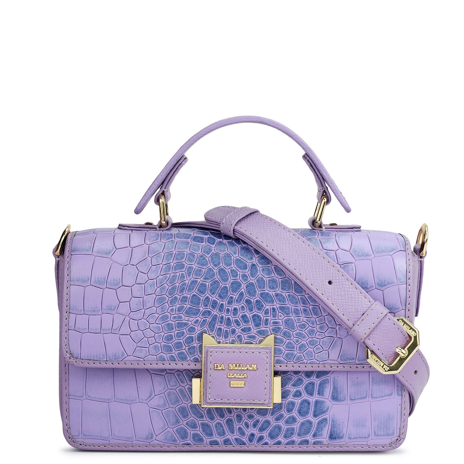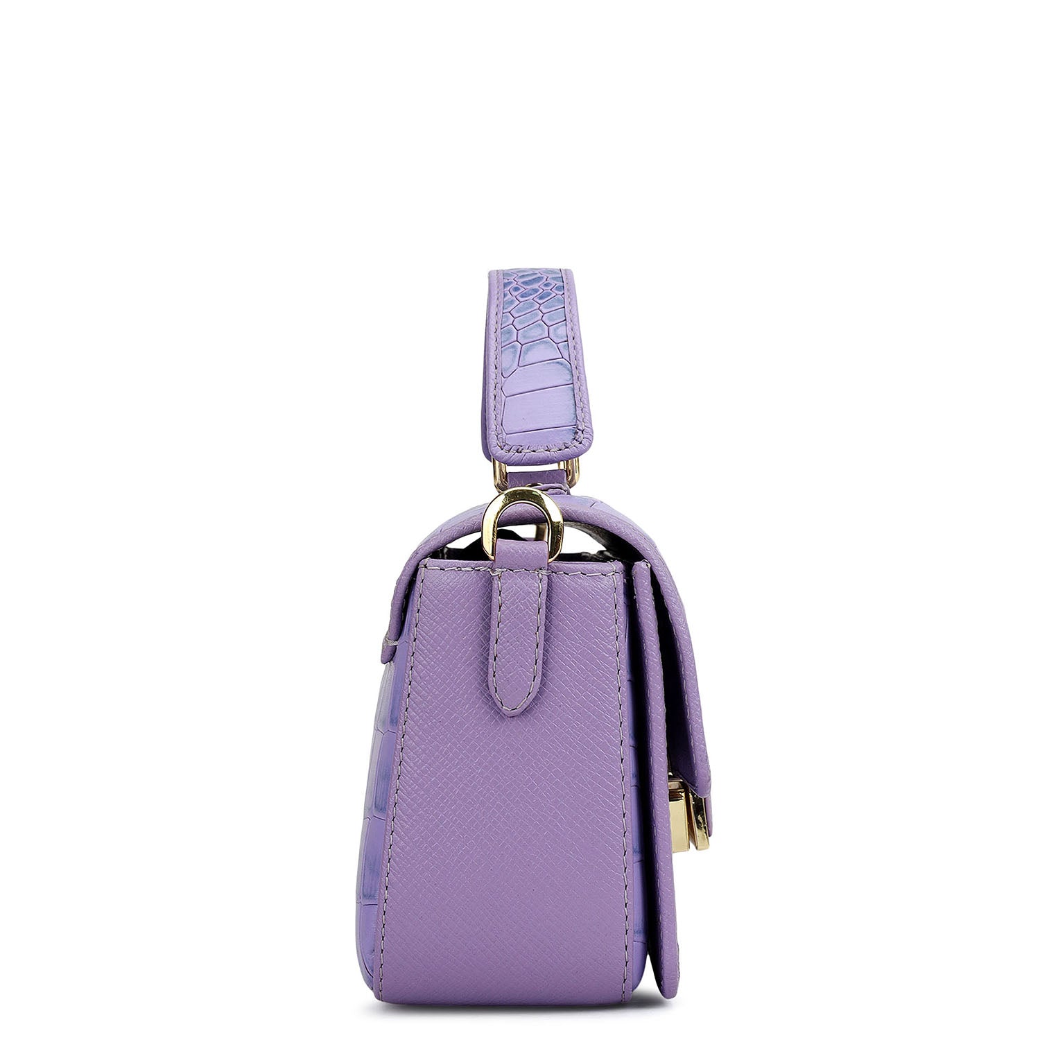 Small Croco Leather Satchel - Purple Haze