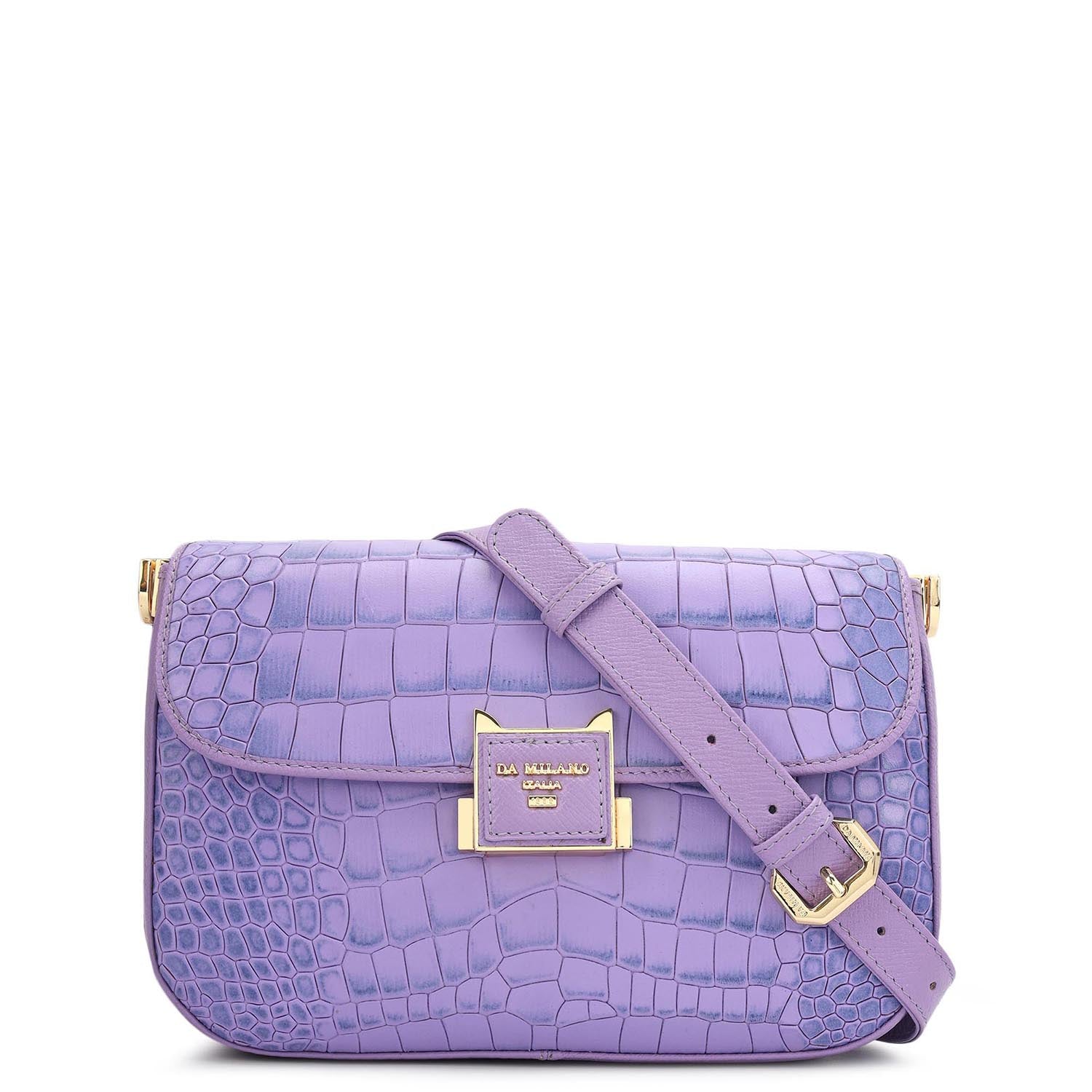 Small Croco Leather Shoulder Bag - Purple Haze